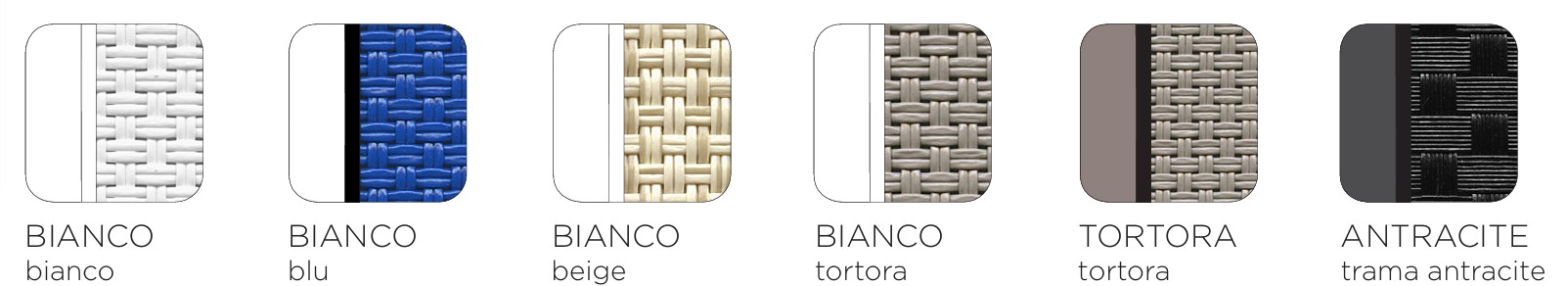| Couleur | ANTHRACITE-trama anthracite, BLANC-beige, BLANC-blanc, BLANC-bleu, BLANC-tortora, TORTORA-tortora |