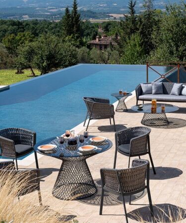 Cette chauffeuse d’extérieur, au design épuré, incarne l’idée de légèreté grâce à la forme créée par l’entrelacement de lignes fines et graphiques. Son profil en acier tressé est l’élément emblématique de la collection, qui se distingue par l’harmonie et la proportion de ses lignes. Ce design minimaliste joue avec l’équilibre entre les espaces vides et les formes pleines, créant une silhouette à la fois légère et robuste.