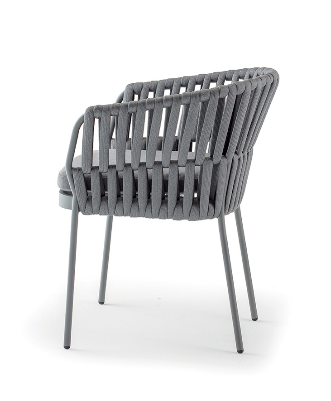 Ce fauteuil empilable marie élégance minimaliste et praticité contract. Sa structure en aluminium peint est habillée d’une corde acrylique tressée à la main, pour un rendu à la fois contemporain et résistant. Il est équipé d’un coussin amovible en tissu Olefin, reconnu pour sa tenue face à l’humidité et aux UV. Léger, empilable et robuste, il s’intègre parfaitement à tous types d’aménagements professionnels, en intérieur comme en extérieur.
