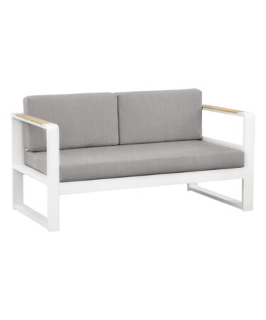Canape en aluminium verni, accoudoirs en teck, coussins hydrofuges. Pour usage extérieur.