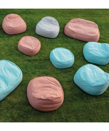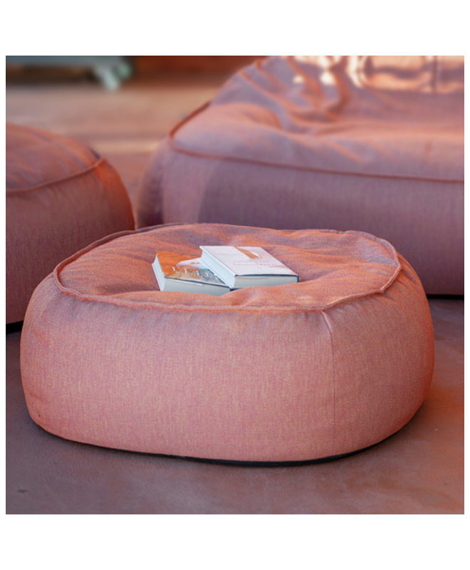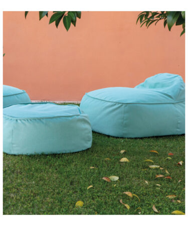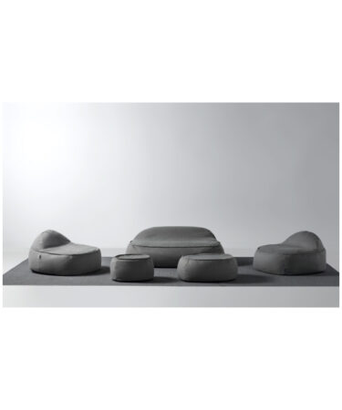 Composé d’un sofa, deux fauteuils, un pouf. Tissu extérieur Axroma imperméable et resistant aux UV. Interieur sac étanche garni de billes de polystyrène. Usage extérieur.