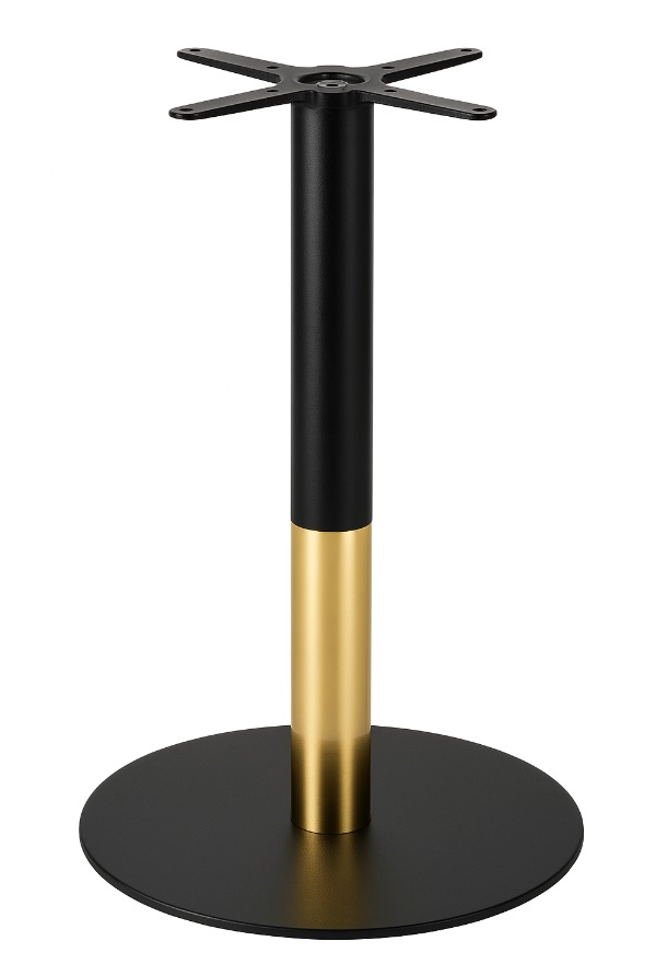Ce pied de table allie élégance et robustesse grâce à sa conception en fonte peinte. Sa base massive assure une excellente stabilité, tandis que sa colonne noire, rehaussée d’une partie inférieure dorée finition 24K, apporte une touche de raffinement et de modernité.