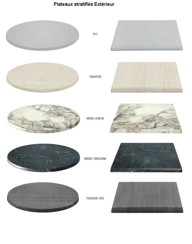Les plateaux sont conçus pour un usage en extérieur, alliant résistance, facilité d’entretien et esthétique contemporaine. Déclinés en plusieurs finitions et formats, ils permettent de composer des espaces variés et harmonieux, adaptés aux environnements professionnels comme résidentiels.