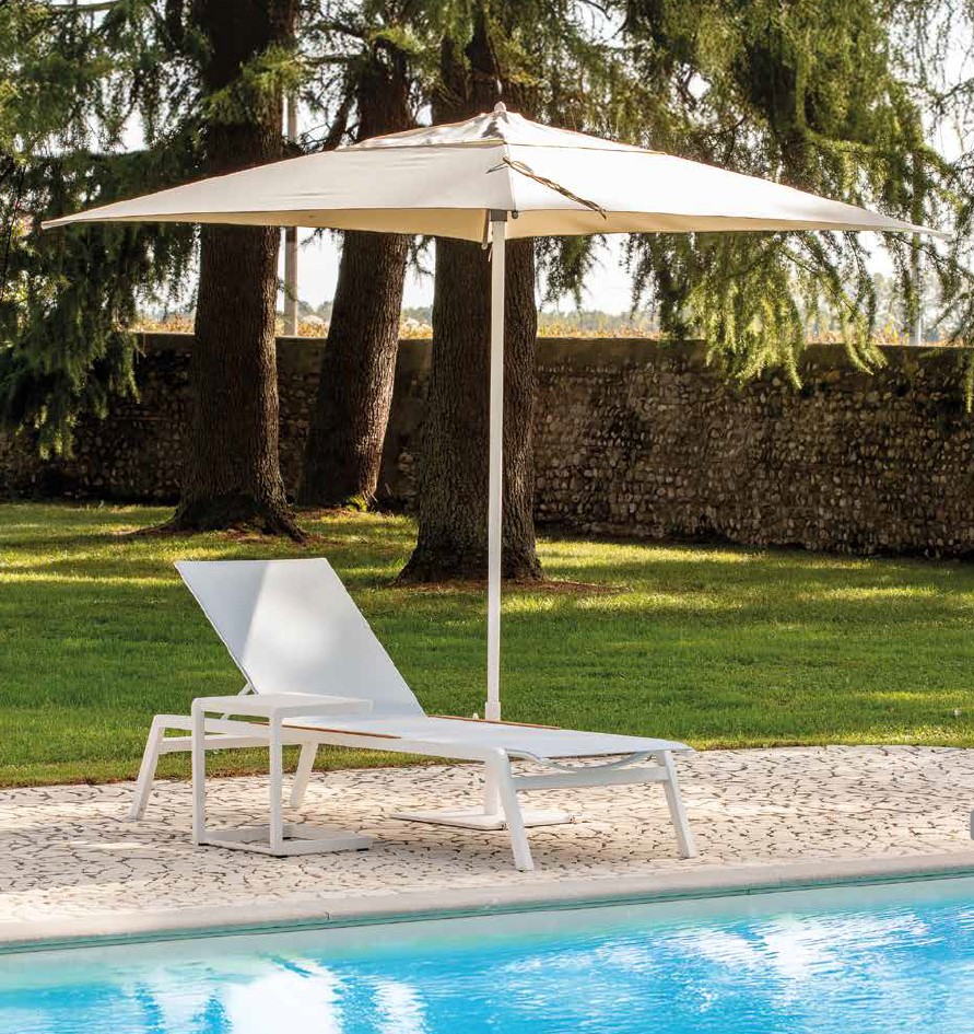 Idéale en complément de transats et bains de soleil, notamment au bord de piscine, pour créer un espace de détente pratique et élégant.
