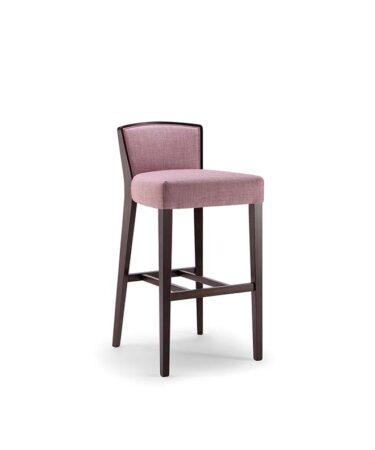 La chaise haute se distingue par son design élégant et son confort supérieur, offrant un coussin et un dossier rembourrés pour un soutien optimal. Ses pieds évasés caractéristiques ajoutent une touche distinctive et raffinée.